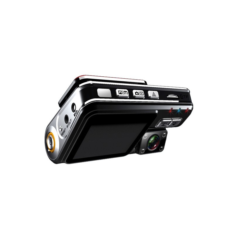 Videoregistratore per veicoli con doppia telecamera ad ampio angolo di visuale. Una camera per auto che può registrare contemporaneamente da due fonti video.